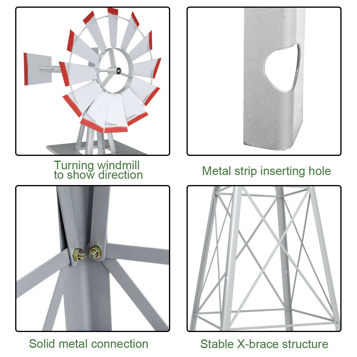 Costway 8ft Tall Windmill Ornamental Wind Wheel Silver Gray And Red Garden Weather Vane Walmart Com